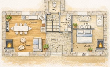 Le poêle — le cœur de la maison C'est lui qui chauffe toute la maison. Si vous ne savez pas comment l'allumer, direction la FAQ — on vous explique tout pas à pas. Et une règle absolue : la porte du poêle reste fermée en permanence.