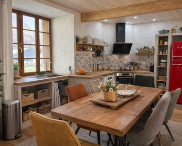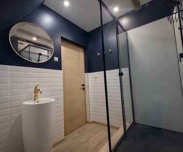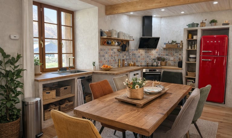 📐 Les murs ne sont pas droits — et c'est très bien comme ça Quand on a commencé à construire, on a vite compris que les angles droits, ici, c'est une suggestion. Chaque étagère, chaque meuble, chaque installation a été une petite négociation avec la maison. Elle a toujours eu le dernier mot.