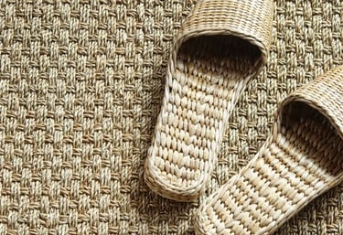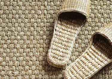 Les sols en jonc de mer naturelles sont fragiles et ne se nettoient pas facilement. Merci de les retirer dès l'entrée.